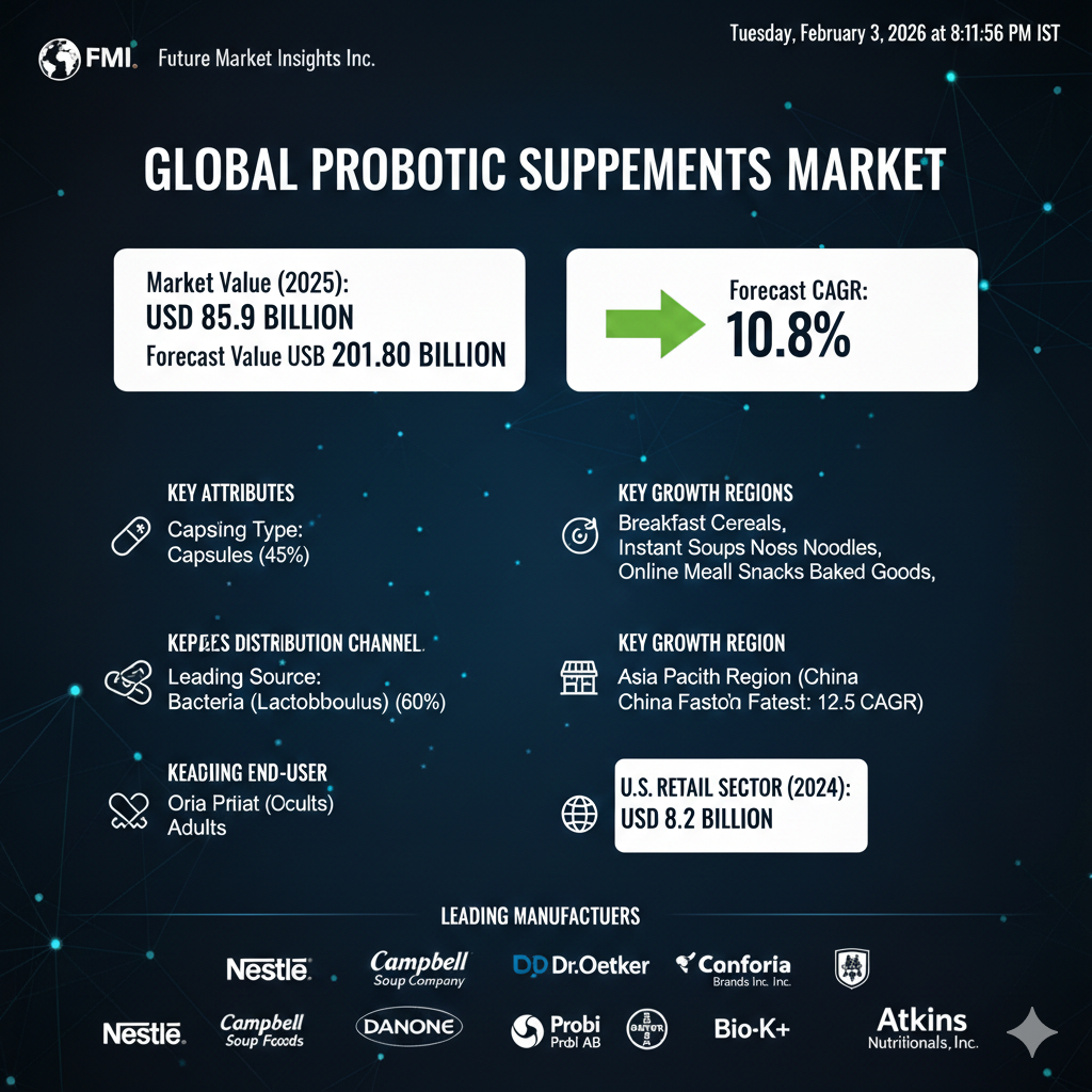 As healthcare continues to shift from treatment to prevention, probiotic supplements are expected to play a central role in daily wellness routines. With expanding applications, diversified formats, and increasing scientific validation, the market’s projected growth to USD 37.5 billion by 2036 reflects strong long-term confidence in microbiome-based nutrition.