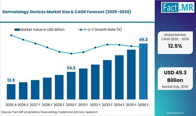 The global dermatology devices market is undergoing a structural transformation, evolving from a niche medical equipment segment into one of the highest-growth categories in the healthcare sector. According to the latest market analysis by Fact.MR, the industry, valued at $15.19 billion in 2026, is on a trajectory to reach $49.32 billion by 2036.