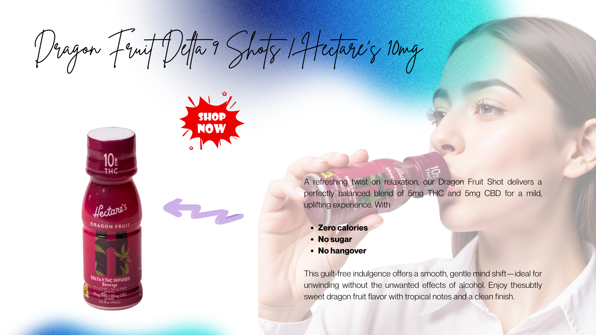 A Dragon Fruit Shot is a 10mg ready-to-drink beverage by Hectares, also known as Delta 9 Shot or Delta Dragon. It offers tropical dragon fruit flavor in a convenient, pre-measured bottle.