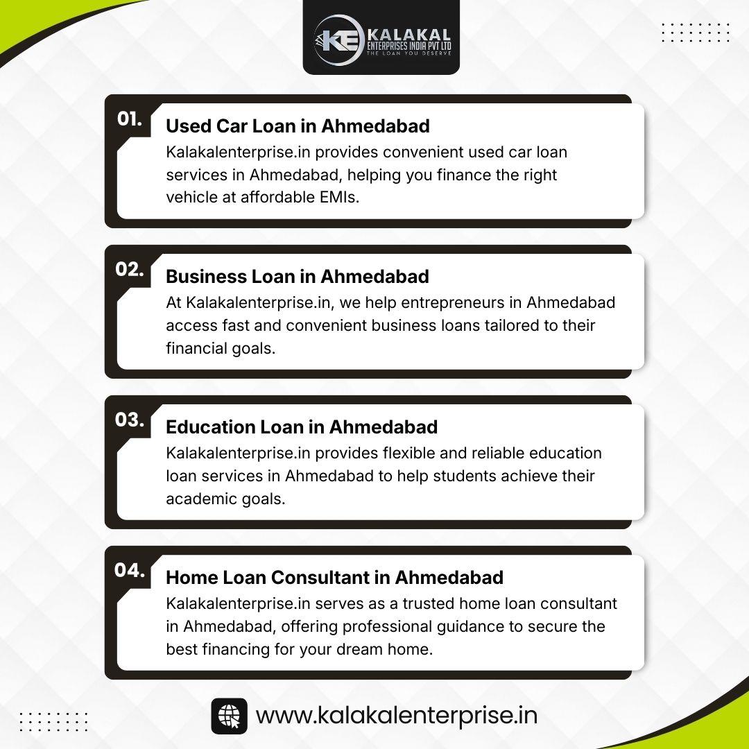 At Kalakalenterprise.in, we help entrepreneurs in Ahmedabad access fast and convenient business loans tailored to their financial goals. Our simplified process, minimal documentation, and transparent terms ensure a smooth borrowing experience. Whether you need working capital or funds for expansion, our expert guidance supports every step. We focus on delivering quick approvals and trusted solutions to empower your business with the right financial resources.